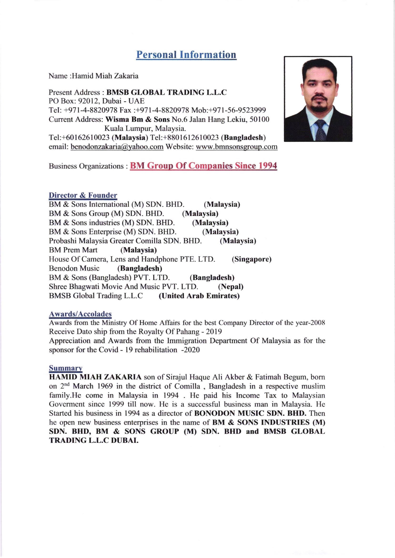 Profile HAMID MIAH ZAKARIA
